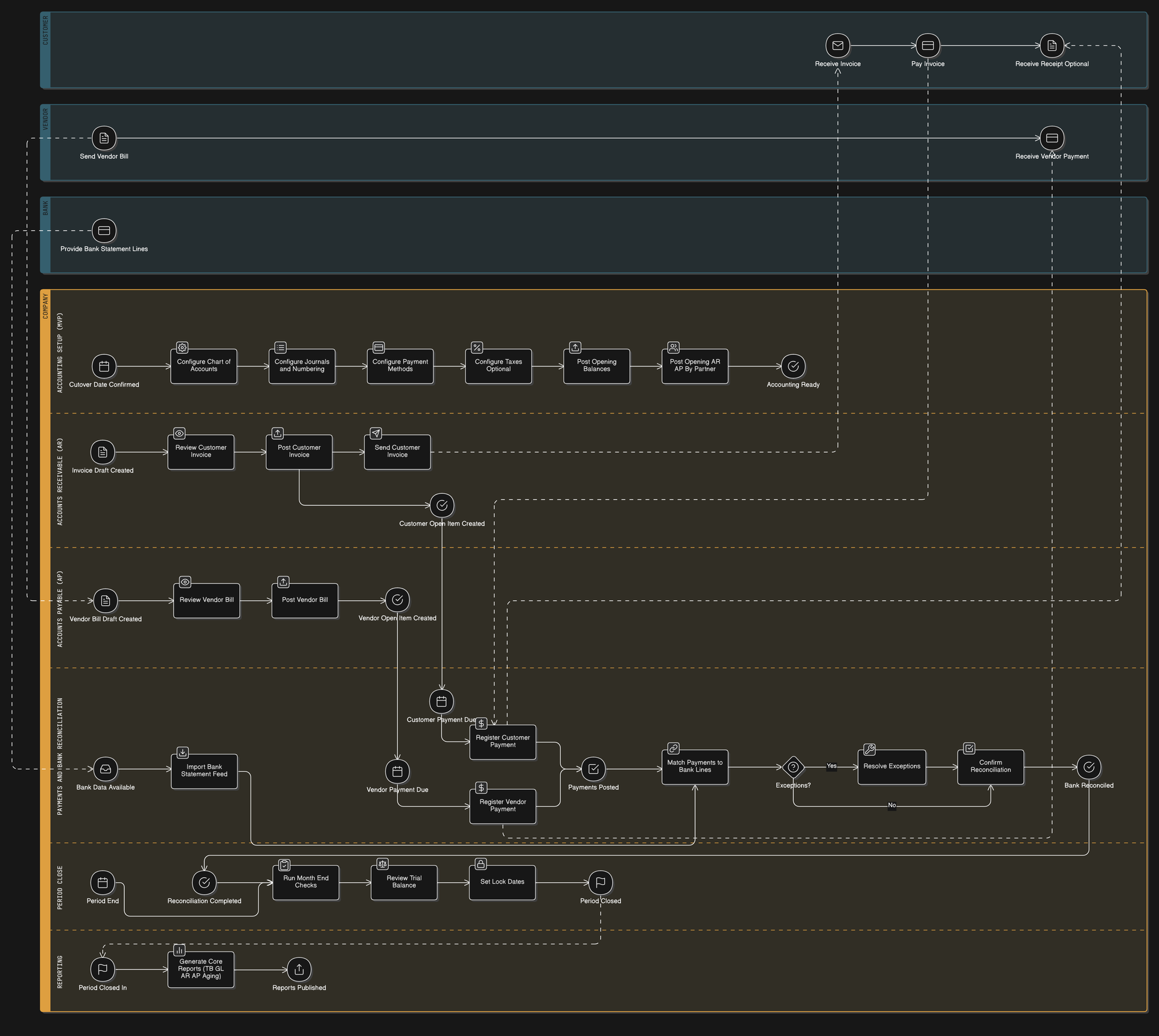 // BPMN for Accounting Standard Flow Implementation (Odoo 19.0)